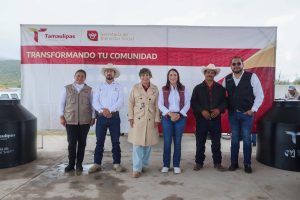 La escuela primaria rural “Lic. Benito Juárez” fue el escenario para que las autoridades y beneficiarios se reunieran y celebraran la llegada de tinacos con capacidad de almacenar hasta 750 litros de agua, que les facilitarán el abasto en esta zona que se caracteriza por escasas precipitaciones de lluvia.