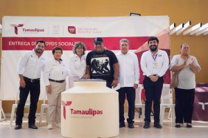 Más tarde, en el Centro de Bienestar y Paz del municipio de Tampico y contando con la presencia de la presidenta municipal de ese puerto Mónica Villarreal Anaya quien dio un mensaje de bienvenida, se hizo entrega de 76 tinacos que fueron gestionados ante la Secretaría de Recursos Hidráulicos para el Desarrollo Social.