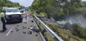 Autoridades de veracruzanas informaron que el vehículo en el que viajaban se salió de la carretera y chocó contra un muro de contención, provocando que se incendiara.
