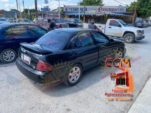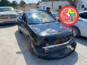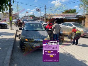 ***El conductor de un Nissan Sentra que padece de sus capacidades diferentes omitió el alto total en el cruce de Cuauhtémoc y V. Guerrero e impacto el automóvil que era manejado por la profesora.