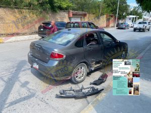 Al cruce con Vicente Guerrero omitió la señal de alto e impactó al Ford Focus con matrícula de circulación XMW508D de Tamaulipas, quien era conducido por la hora lesionada, la cual se desplazaba en sentido de poniente a oriente con preferencia de paso.
