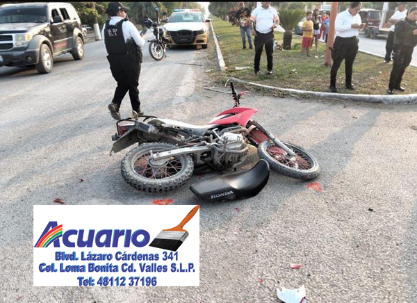 En Xicoténcatl, Tamaulipas… Una catedrática al volante termino por atravesarse en su vehículo en plena carretera Xicoténcatl – El Ingenio, provocando que un menor de 15 años a bordo de una motocicleta Honda tipo Cross se estrellaron su contra.