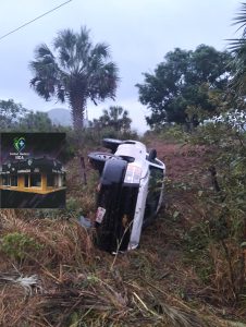 En Llera, Tamaulipas…. El susto de sus vidas de lo llevo el conductor de una camioneta Chevrolet Silverado color blanco con placas WE-0970-C del estado de Tamaulipas,   al perder el control y terminar patas arriba sobre el kilómetro 150 de la carretera Mante–Llera, justo a la altura del poblado El Encino.