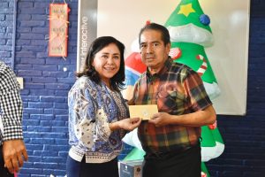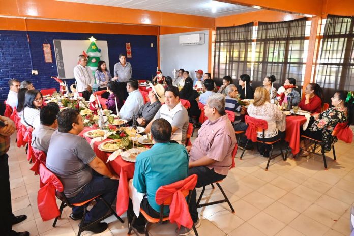 La Presidenta Municipal, Mariela López Sosa, asistió a la Posada Navideña de maestras y maestros de la Zona Escolar 14 de Telesecundarias, donde compartió un momento de convivencia, reconoció su dedicación y les expresó sus mejores deseos en esta Navidad y para el Año Nuevo 2026.