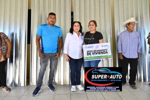 La presidenta municipal Mariela López Sosa encabezó la entrega de apoyos del programa de mejoramiento de vivienda, consistente en láminas para familias que más lo necesitan.