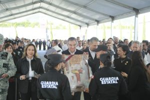 Al presidir la ceremonia cívica de honores en el complejo estatal de Seguridad Pública, en el marco de la celebración del Día de la Guardia Estatal, el gobernador destacó que la presencia de la corporación se puede ver y constatar en las carreteras, en zonas urbanas y en las diferentes regiones de la entidad, “como en una labor diaria, sostenida y continua mejorando nuestros niveles de indicadores de seguridad”, sostuvo.