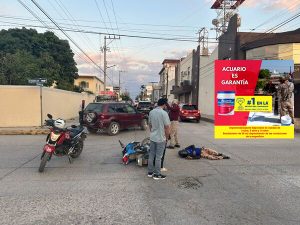 El accidente se registró en el cruce de las calles Morelos y Marinero, donde, de acuerdo con los primeros reportes, una camioneta presuntamente no respetó el señalamiento de alto, provocando el impacto con la motocicleta que circulaba con preferencia de paso.