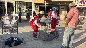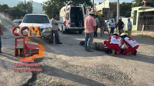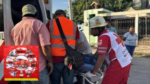 Tras el fuerte choque, el motociclista sufrió probable fractura en la pierna derecha, además de golpes contusos y escoriaciones en el rostro, por lo que fue atendido en el lugar por paramédicos de la Cruz Roja, quienes posteriormente lo trasladaron al Hospital del Seguro Social para su valoración médica.
