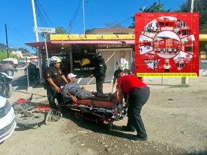 Paramédicos del Heroico Cuerpo de Bomberos llegaron rápidamente para brindarle los primeros auxilios y de inmediato lo trasladaron a un hospital, debido a la gravedad de la lesión que presentaba.