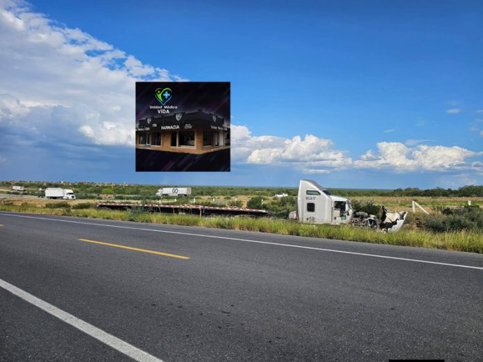 Nuevo Laredo, Tamaulipas.- En atención a un reporte del C4 personal de la Guardia Estatal de Apoyo Carretero en el municipio de Nuevo Laredo, acudió al kilómetro 180 de la Carretera Federal 85 en donde se suscitó un choque entre un tractocamión y una camioneta.