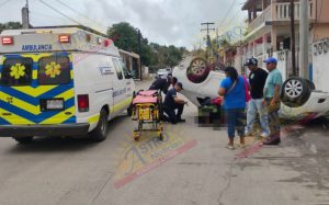 En Tampico, Tamaulipas….Una mujer resultó lesion@da y tuvo que aguardar aproximadamente una hora en ser auxiliada por paramédicos ante la falta de ambulancias, al volcar su automóvil después de pegar contra la guarnición de una banqueta.