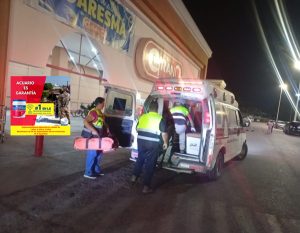 En El Mante, Tamaulipas.–Elementos de Grupo GREPI atendieron el reporte de una persona lesionada al interior de la tienda GranD, donde una mujer sufrió una probable fractura en una de sus extremidades inferiores.