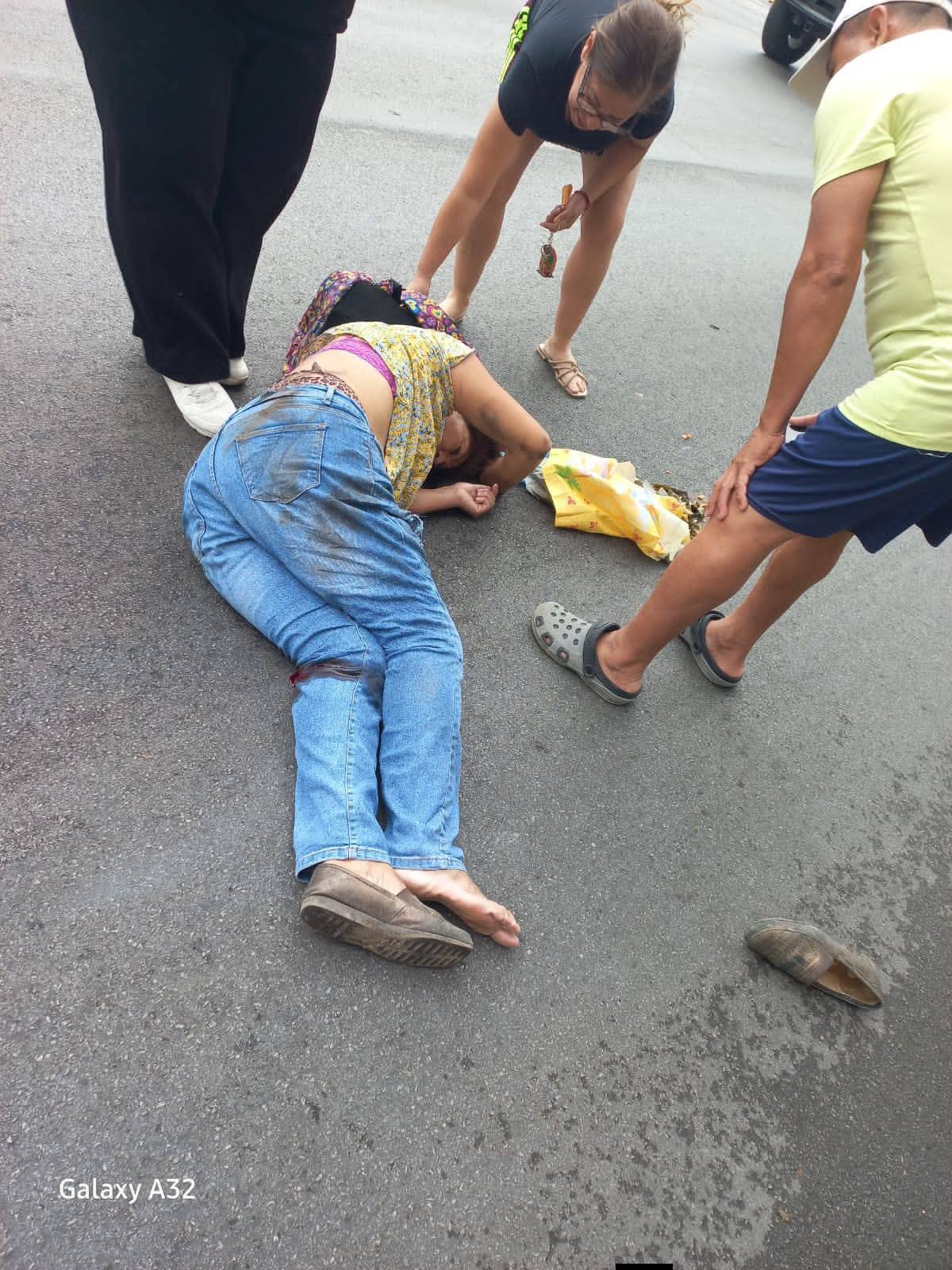 La mujer quedó tendida en el suelo, siendo auxiliada por varias personas.