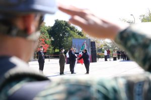 Ciudad Victoria, Tamaulipas.- Al presidir la ceremonia conmemorativa del Día de la Bandera, el gobernador de Tamaulipas, Américo Villarreal Anaya, afirmó que el lábaro patrio revive lo que las y los mexicanos han hecho, por lo que han luchado, y por supuesto, sirve para modelar con esperanza lo que “somos capaces de hacer en el futuro”.