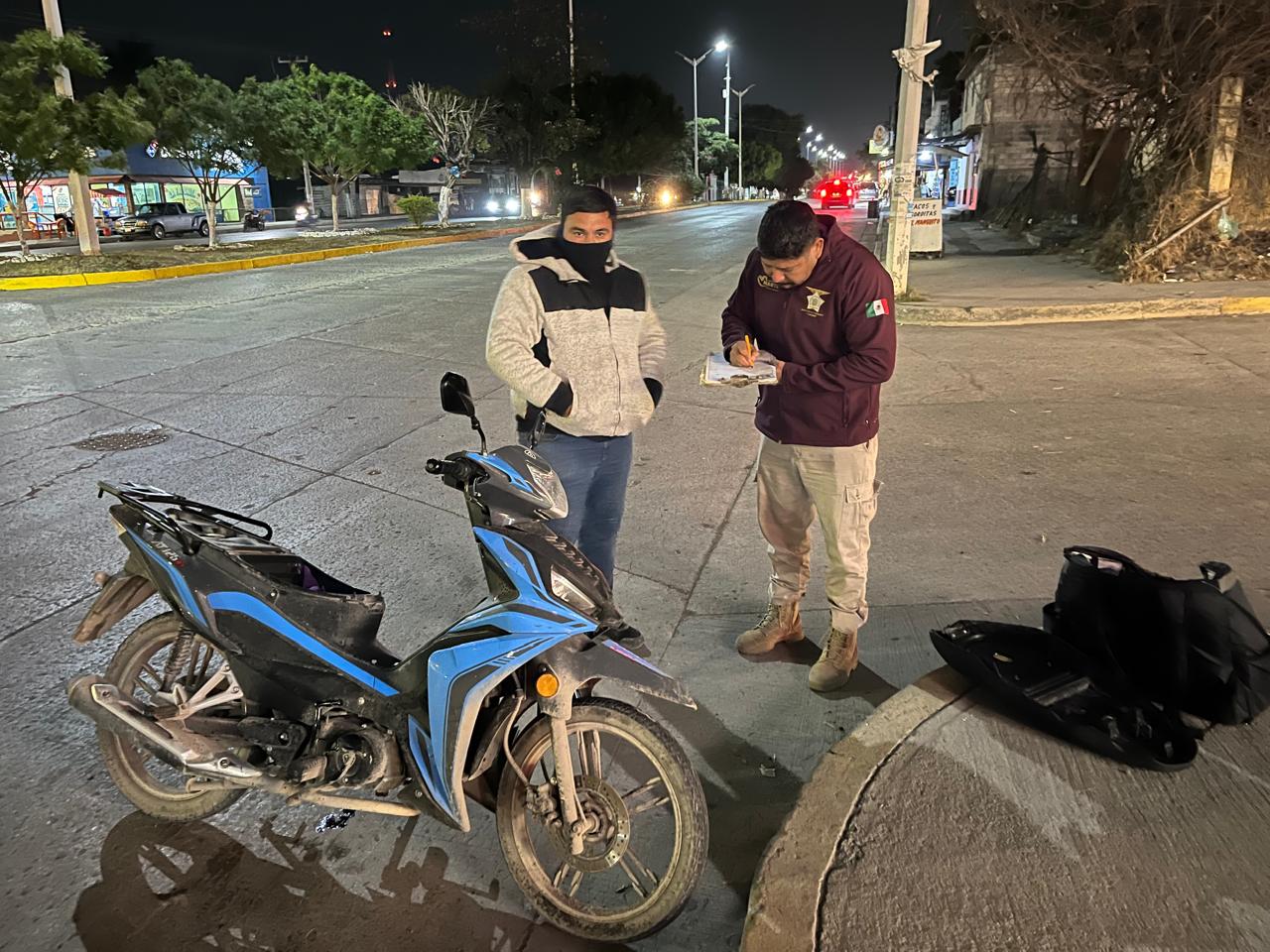En El Mante, Tamaulipas…Una noche que parecía transcurrir con normalidad terminó convertida en escena de tensión, sirenas y miedo, luego de que un violento choque entre una motocicleta y una camioneta se registrara la noche de este domingo en el cruce del bulevar Enrique Cárdenas González y la calle Popocatépetl, uno de los puntos con mayor carga vehicular de la ciudad.