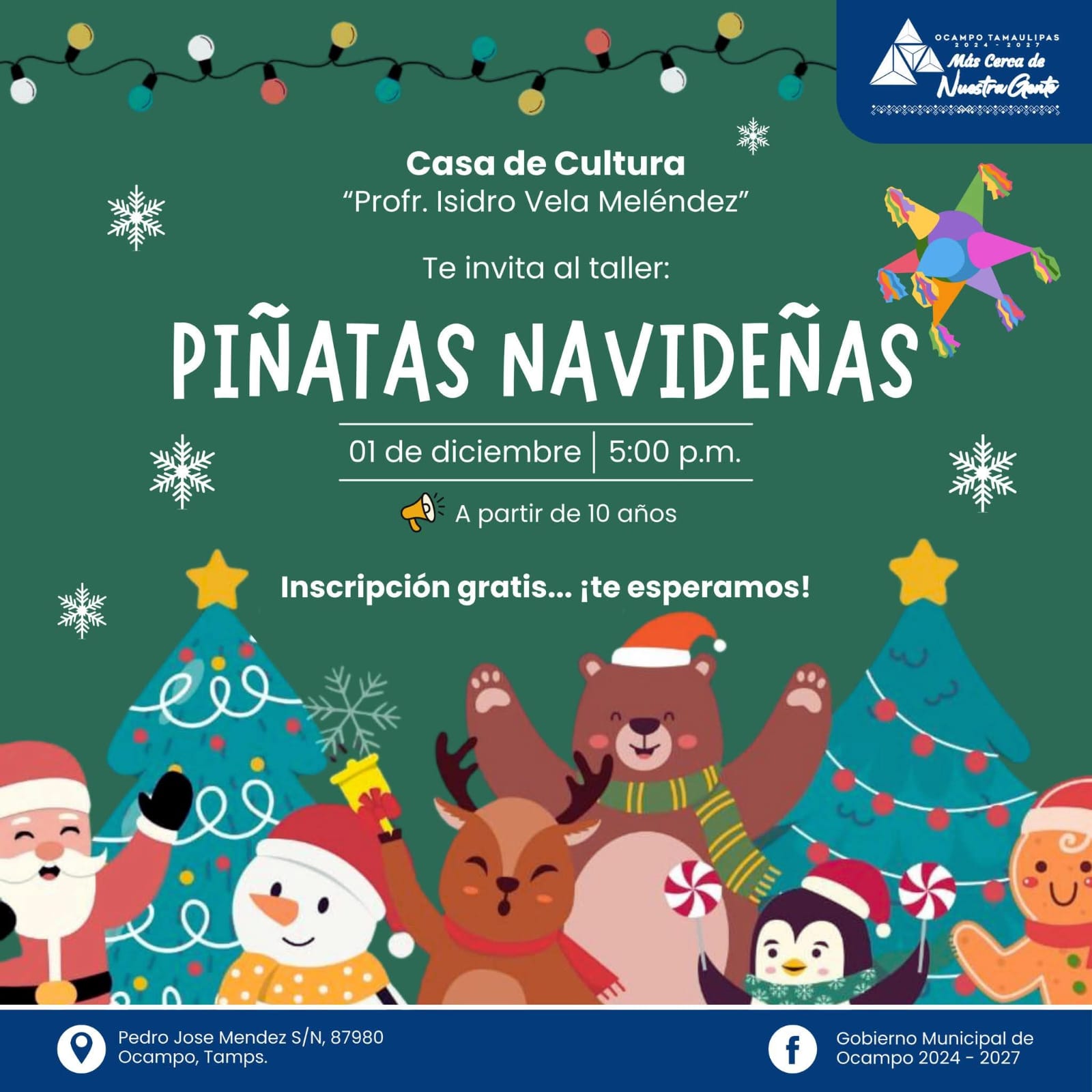 Una oportunidad única para que niños y jóvenes exploren su creatividad y contribuyan a las tradiciones navideñas del municipio, ¡creando su propia piñata!