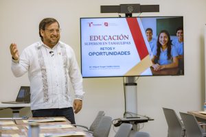 Durante su exposición el titular de la SET, compartió los principales retos y oportunidades que tiene la educación superior en México y Tamaulipas