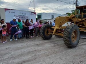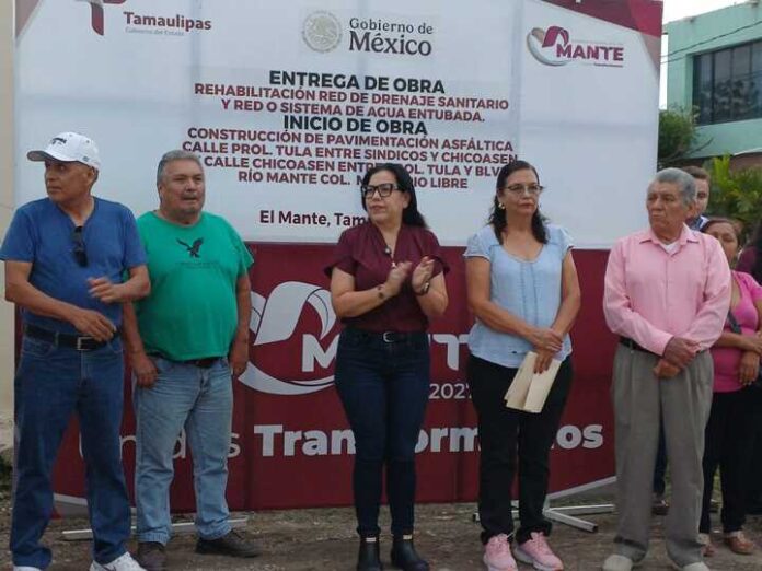 El Mante, Tamaulipas.- En un evento encabezado por autoridades municipales, la alcaldesa Martha Patricia Chío de la Garza y síndicos y regidores y con la participación de vecinos, se dio el banderazo de inicio a importantes obras de infraestructura en la Colonia Municipio Libre, además de la entrega de trabajos de rehabilitación de agua y drenaje ya concluidos.