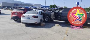 El exceso de velocidad provocó una carambola en el estacionamiento de la plaza comercial Adelitas, luego de que el conductor de una camioneta RAM perdiera el control de la unidad, subiera al camellón y desatara una cadena de impactos contra vehículos estacionados.