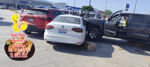 El exceso de velocidad provocó una carambola en el estacionamiento de la plaza comercial Adelitas, luego de que el conductor de una camioneta RAM perdiera el control de la unidad, subiera al camellón y desatara una cadena de impactos contra vehículos estacionados.