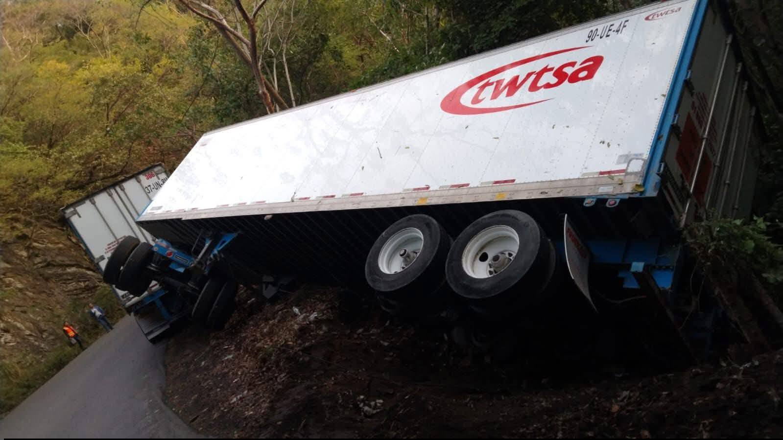 Se espera el arribo de grúas y equipo especializado para llevar a cabo las maniobras de retiro del remolque siniestrado.