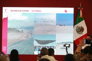 Villarreal Anaya presentó imágenes de esta mañana que muestran las condiciones en que se encuentran las playas del estado y aseguró que se mantiene estrecha vigilancia sobre la probable presencia de manchas de hidrocarburo, sin que existan altas concentraciones de estos residuos.