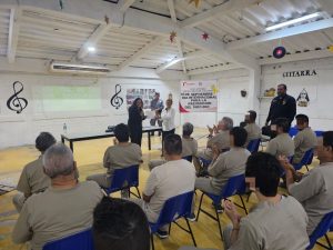Altamira, Tamaulipas.- Dentro de las actividades realizadas por la Secretaría de Seguridad Pública de Tamaulipas (SSPT) durante el Día Mundial de la Prevención del Suicidio, conmemorado cada 10 de septiembre, en el Centro de Ejecución de Sanciones (CEDES) del municipio de Altamira llevó a cabo la plática “Suicidio: La Prevención Eres Tú”, dirigida a personas privadas de la libertad (PPLs) del área varonil.