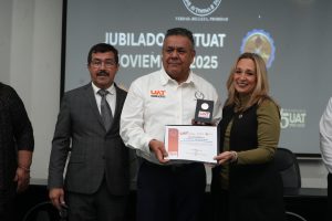 El rector Dámaso Anaya Alvarado presidió la entrega de reconocimientos a las y los jubilados del Sindicato Único de Trabajadores de la Universidad Autónoma de Tamaulipas (SUTUAT), a quienes agradeció por todos los años de esfuerzo y dedicación al servicio de la casa de estudios.