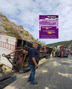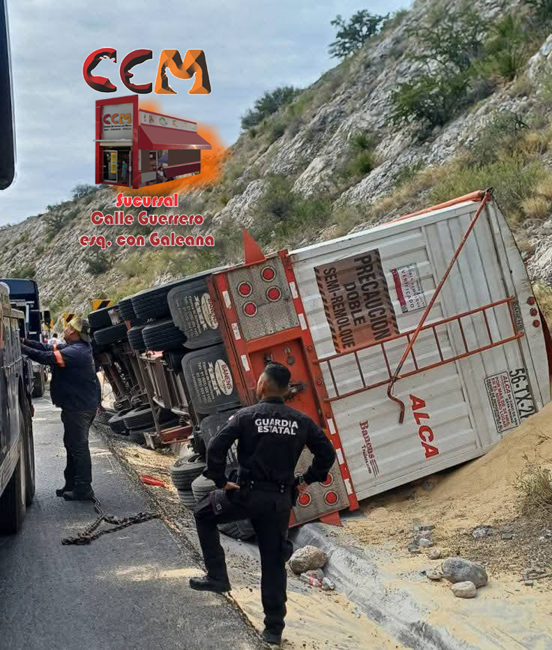Ciudad Victoria, Tam.- Un tráiler cargado con soya volcó este lunes a la altura del kilómetro 35 de la carretera Rumbo Nuevo, dejando como saldo al conductor lesionado, quien fue trasladado a un hospital para recibir atención médica.