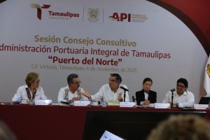 Ciudad Victoria, Tamaulipas.- Al presidir la sesión del Consejo Consultivo de la Administración Portuaria Integral de Tamaulipas, Puerto del Norte, el gobernador Américo Villarreal Anaya reiteró su compromiso para apoyar las gestiones y las autorizaciones necesarias a fin de seguir impulsando este gran proyecto, que tiene una alta rentabilidad para el desarrollo nacional y que permitirá convertir a Tamaulipas en la principal frontera marítima del país.