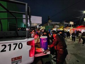 Durante la jornada se entregaron alimentos calientes, café, pan y lonches, como parte de una labor solidaria para mitigar los efectos del frío.