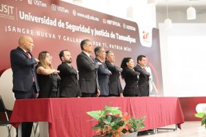 La graduación celebrada en el Auditorio de la USJT contó con la presencia del secretario de Seguridad Pública de Tamaulipas, Carlos Arturo Pancardo Escudero, quien reiteró el compromiso de la dependencia a su cargo de transformar el sistema de seguridad y justicia con la firmeza de los valores, la aplicación de las mejores prácticas y el respeto a los derechos humanos, para proteger y servir a la ciudadanía.