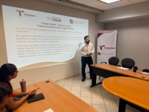 Ciudad Victoria, Tamaulipas.- La Secretaría del Trabajo y Previsión Social de Tamaulipas (STPS) llevó a cabo una jornada informativa dirigida al personal administrativo y de ventas de Nissan Victoria, con el objetivo de reforzar la erradicación del trabajo infantil y garantizar los derechos de los adolescentes trabajadores en edad permitida.