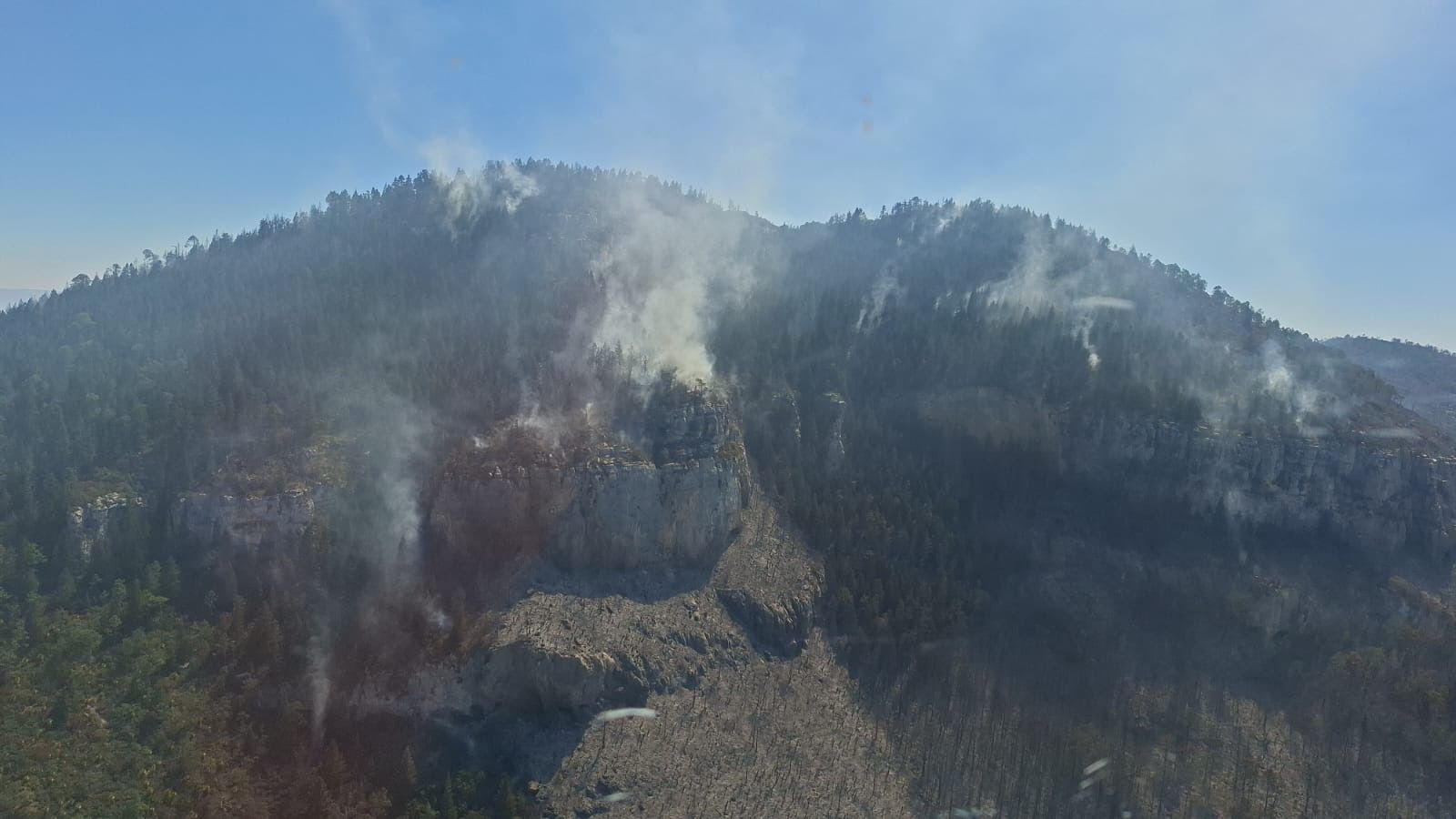 Señaló que desde el primer reporte del siniestro, brigadas terrestres iniciaron labores pie a tierra; sin embargo, las altas temperaturas y las fuertes rachas de viento han favorecido la rápida propagación del fuego, lo que ha representado un desafío adicional para los equipos de emergencia.