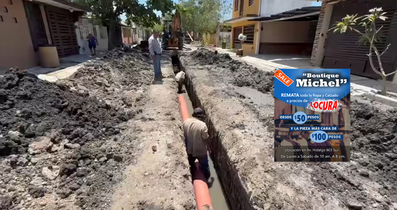 La COMAPA informa que actualmente se están realizando trabajos de reemplazo de una línea de drenaje de PVC de 10 pulgadas, ubicada en la calle Lázaro Cárdenas, entre Ficus y Maguey, de la colonia Arbustos.