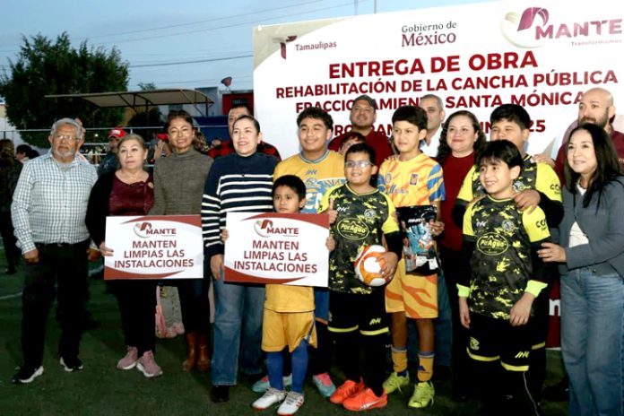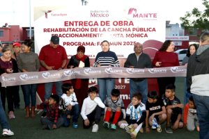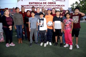​Familias del Fraccionamiento Santa Mónica cuentan ya con un espacio renovado para la convivencia y el deporte, con la entrega de la rehabilitación de la cancha pública realizada por el Gobierno Municipal de El Mante, encabezado por la presidenta municipal Patty Chío.