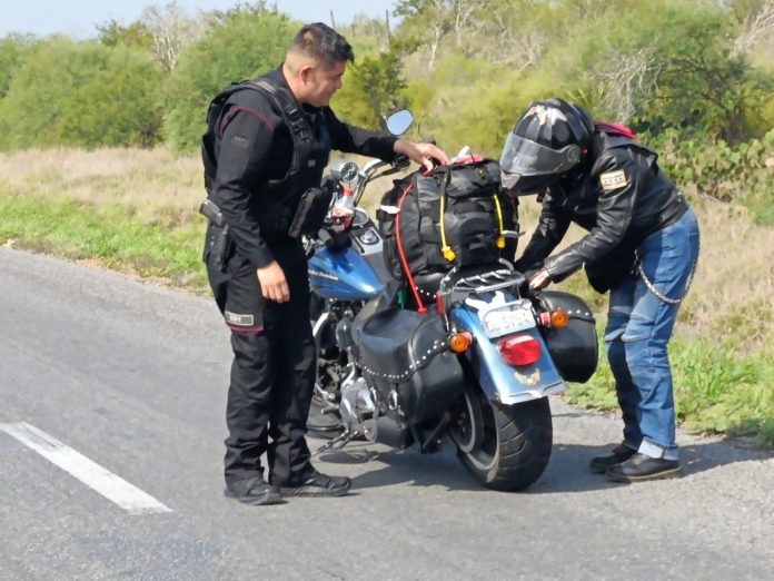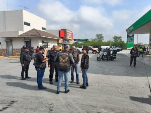 Jiménez, Tamaulipas.– Personal de la Guardia Estatal desplegó un operativo de seguridad para resguardar el paso de una caravana internacional de motociclistas que ingresó al estado con destino a El Salvador.