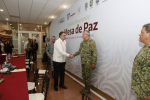 Al presidir la sesión itinerante de la Mesa de Paz, acompañado por la presidenta del Sistema DIF Estatal, doctora María de Villarreal, en las instalaciones de la Expo Tampico, en donde también asistieron integrantes de la Mesa Ciudadana de Seguridad y Justicia, el mandatario estatal expresó que esta reunión de trabajo es un ejemplo de la unión y participación que se tiene en Tamaulipas para lograr mejores oportunidades y tiempos de solución de los problemas.
