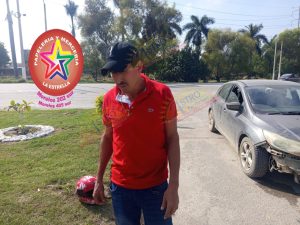 En El Mante, Tamaulipas…Un nuevo accidente vial se registró la mañana de este lunes en el distribuidor vial provocado por una mujer quien sacó la trompa de más de su automóvil e impactó a un motociclista el cual dejó con golpes en diferentes partes del cuerpo y fue atendido por el personal de bomberos..