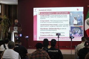 Hernández Rodríguez se refirió a las distinciones y reconocimiento recibidas por Tamaulipas a nivel nacional e internacional y mencionó los eventos de turismo deportivo y el de turismo de reuniones.