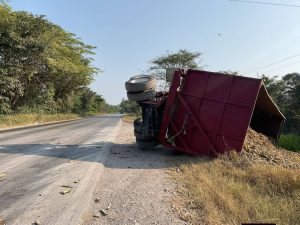 El hecho ocurrió en el tramo comprendido entre Tamuín y La Fortaleza, a la altura del sitio conocido como La Puntilla. La pesada unidad avanzaba con dirección a Ciudad Valles cuando, repentinamente, el remolque se desacopló.