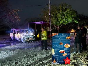 En El Mante, Tamaulipas…Una camioneta tipo minivan terminó completamente consumida por el fuego la noche de este miércoles en el fraccionamiento Miravalle, luego de que presuntamente un cortocircuito en el motor desatara el incendio.