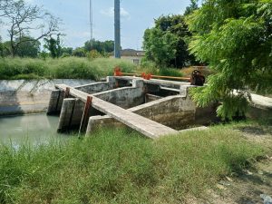 Los trabajos de reparación de la compuerta radial frente a la difusora podrían concluirse hoy mismo y cerrar las compuertas de la Ahuja para volver a captar agua y restablecer la distribución de agua por los canales principales.