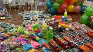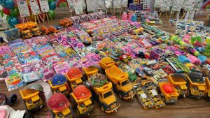 Desde pelotas, muñecas, cochecitos, juegos de destreza y triciclos, entre otros productos que no fomentan la violencia, fueron entregados a la noble institución que organiza la colecta DIFtón “Juguetes por Montón”.