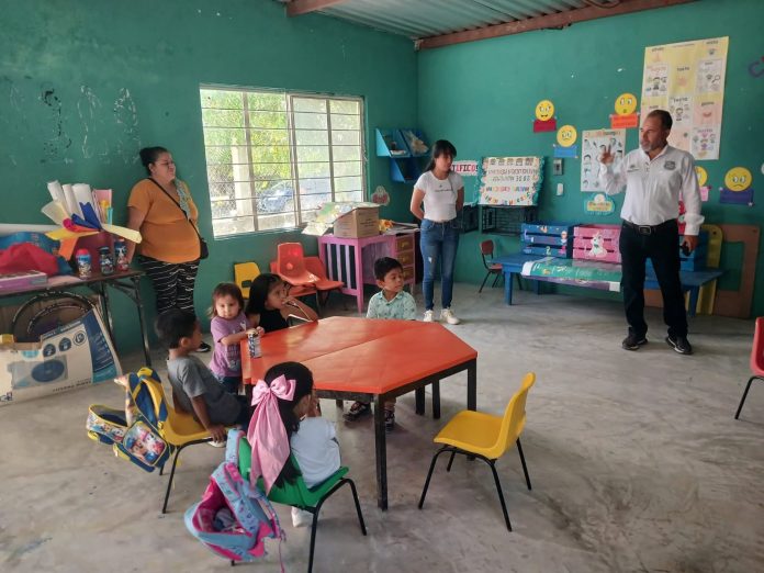 Gómez Farías, Tamaulipas. – La ayuda oficial del Ayuntamiento de Gómez Farías, encabezado por el alcalde Frank de León Ávila, sigue fluyendo en beneficio de los jardines de niños del municipio.