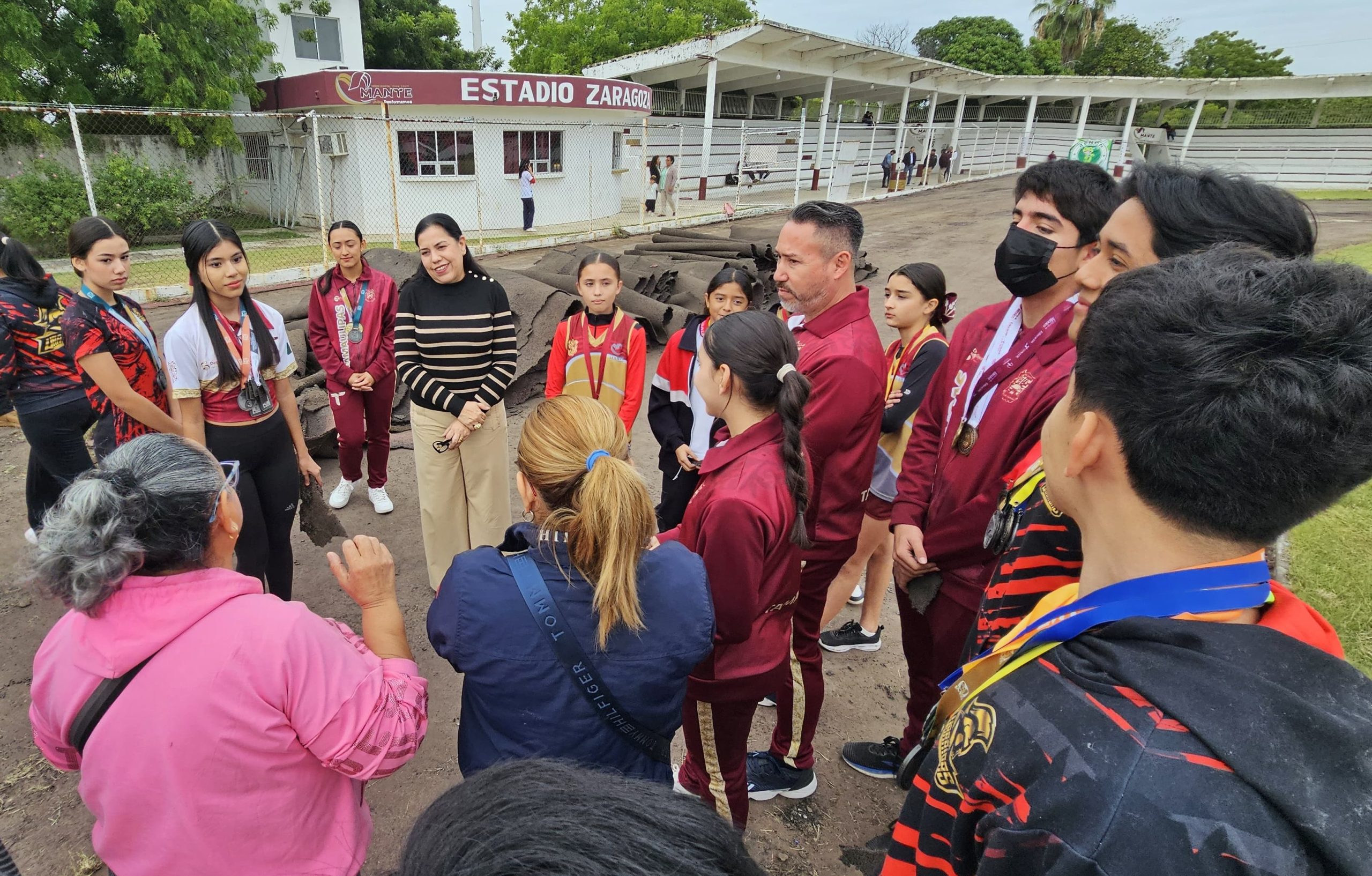 * La Alcaldesa, Atletas y sus familias, agradecen el respaldo del Gobernador al iniciar la rehabilitación de la pista del Estadio Zaragoza; el Gobierno Municipal también invertirá en el lugar.