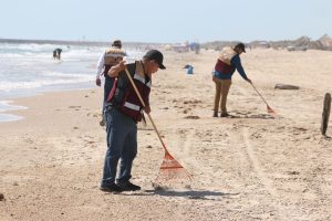 La Pesca, Soto la Marina, Tamaulipas.- Con el objetivo de cuidar la salud ambiental del litoral y brindar tranquilidad a las familias que visitan las costas, el Gobierno de Tamaulipas intensificó este domingo los trabajos de monitoreo y retiro de residuos de hidrocarburo en la playa del poblado La Pesca y Tepehuajes del municipio de Soto la Marina.