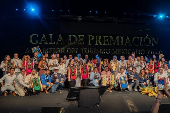 La presea otorgada por el Gobierno Federal que preside la presidenta de México, Claudia Sheinbaum Pardo, fue entregada por Josefina Rodríguez Zamora, secretaria federal de Turismo tras destacar la inversión de 917.59 millones de dólares en 79 proyectos turísticos.
