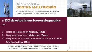 Por su parte, el secretario de Seguridad y Protección Ciudadana, Omar García Harfuch, informó que, como parte de la Estrategia Nacional contra la Extorsión, se han desplegado operativos y bloqueos de señal para evitar que este delito se cometa desde el interior de los centros penitenciarios.