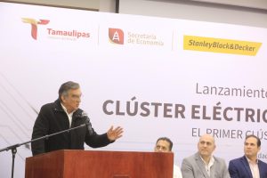 Acompañado por la secretaria de Economía, Ninfa Cantú Deándar, y por Sergio Arturo Treviño Ayala, gerente de planta en Stanley Black & Decker Reynosa y presidente del Clúster Eléctrico-Electrónico, el ejecutivo tamaulipeco destacó que este evento es de relevante trascendencia para la entidad, ya que marca un nuevo rumbo en la concepción empresarial y de transformación en Tamaulipas.